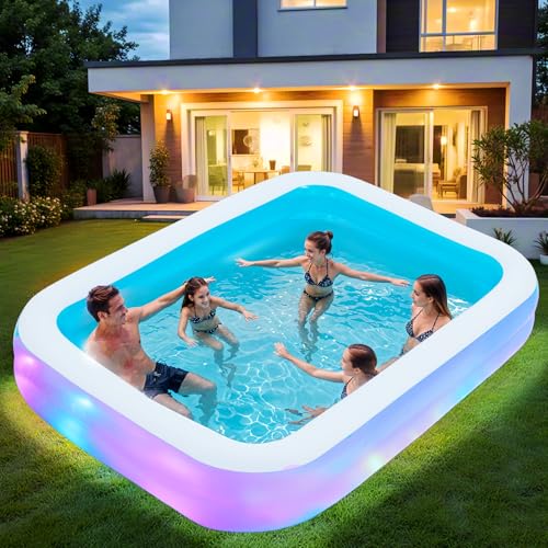 Danrelax 119″x84″x17″ Inflatable Pool with LED Lights, 3 Light Modes, 2-Ring Blow Up Pool for Adults & Kids, Thickened PVC Family Swimming Pool for Backyard & Outdoor Use (Includes Electric Air Pump)